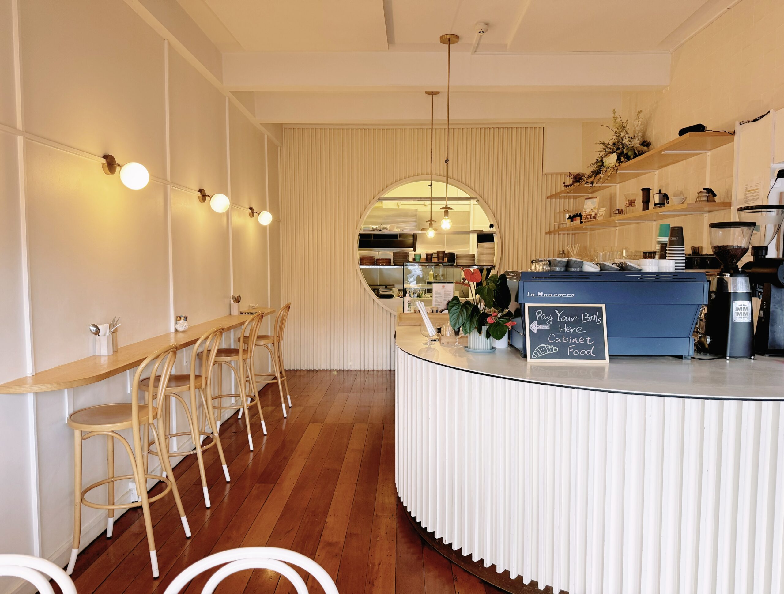 Step inside and you’re greeted by a light-filled, minimalist space that blends clean design with subtle character. The open kitchen, visible through a striking circular window, offers a peek behind the scenes as chefs work their magic. Whether you’re catching up with friends, celebrating a special moment, or simply enjoying a slow morning, Comes & Goes offers a relaxed setting for every kind of gathering.